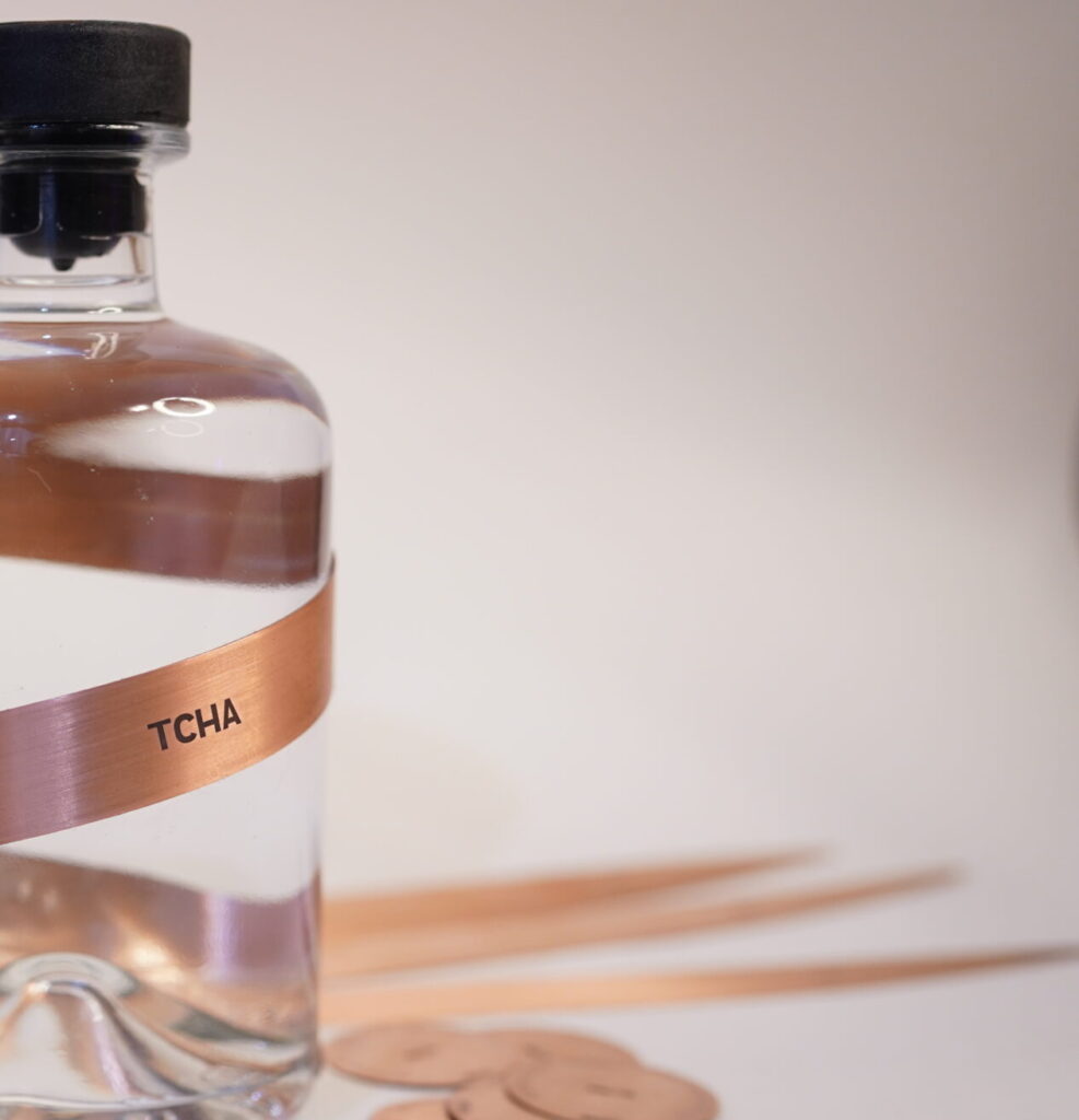TCHA is more than a spirit—it is an object of art. The copper spiral that wraps around the bottle is a tribute to the fire that refines and transforms, just as the distillation process turns raw grapes into pure chacha. The hand-stitched leather grip is a nod to tradition, to the hands that craft, pour, and share, ensuring that every bottle is not only held but truly felt.